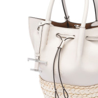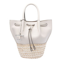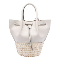 BUCKET BAG IN STRAW AND LEATHER MINI - WHITE, NATURAL