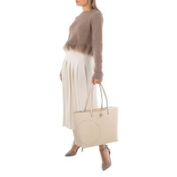 Tory Burch Ladies Tote. SKU: 152221-724. Color: Brie. Size: H: 11.4" x L: 14" x D: 5.5". Tory Burch Brie McGraw Pebbled Leather Tote Bag. The McGraw Tote, made from pebbled leather, boasts a suede-like microfiber lining, a leather tab with a dog-clip closure, top handles with a 10" drop, and an interior hanging zipper pocket. Outer: Calf Leather 100%. GENERAL Size Info: H: 11.4" x L: 14" x D: 5.5" Color: Brie INFORMATION Brand: Tory Burch Gender: Womens Model: 152221-724 DETAILS Material: Leather Closure: Clip ADDITIONAL INFO UPC Code: 196133825532 Jomashop Sku: Z-WBXUP Department: Bags Category: Tote Bags