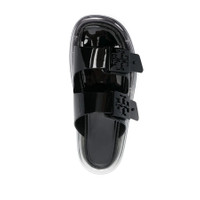 Tory Burch Ladies Sandals. SKU: 149718-001. Color: Black. Tory Burch Buckle Bubble Jelly Sandals. These waterproof sandals feature adjustable straps adorned with signature Double T metal buckles, combining function with a touch of elegance. Designed for comfort, they rest on a distinctive bubble sole known for its soft cushioning. The pared-back silhouette is crafted with a durable TPU upper, complemented by an opaque jelly footbed. Please visit the brand website for sizing information. GENERAL Brand Type: Designer INFORMATION Brand: Tory Burch Model: 149718-001 Gender: Womens DETAILS Category: Sandals Color: Black ADDITIONAL INFO Jomashop Sku: -149718001N Department: Shoes