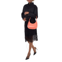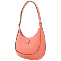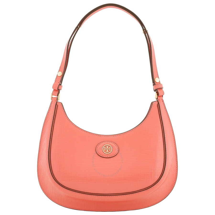 Tory Burch Shoulder Bag. SKU: 158509-650. Color: Coral Crush. Size: H: 5.9" x L: 10.8" x D: 2.8". Tory Burch Coral Crush Robinson Embossed Leather Crescent Bag. The Robinson bag features embossed leather with napa trim, a microfiber lining with a suede-like finish, metal accents, a magnetic snap closure, an adjustable shoulder strap with an 18.1" (46 cm) drop, and an interior hanging card pocket. Outer: Calf Leather 100%. GENERAL Size Info: H: 5.9" x L: 10.8" x D: 2.8" Color: Coral Crush INFORMATION Brand: Tory Burch Gender: Womens Model: 158509-650 DETAILS Material: Leather Closure: Magnetic Snap ADDITIONAL INFO UPC Code: 197865067573 Jomashop Sku: Z-KV96V Department: Bags Category: Shoulder Bag