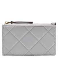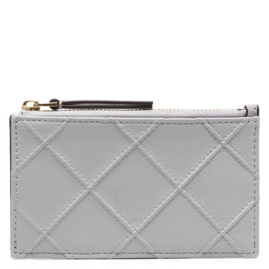 Tory Burch Ladies Card Case. SKU: 152602-029. Barcode: 196133826423. Color: Bay Gray. Size: H: 3" x L: 5.2". Tory Burch Fleming Soft Diamond-Quilted Card Case. The Card Case, crafted from supple Napa leather, features a zipper closure, pintuck quilting, a bombe Double T, four exterior card slots, and one zipper pocket. Outer: 100% Nappa Leather. GENERAL Size Info: H: 3" x L: 5.2" Color: Bay Gray INFORMATION Brand: Tory Burch Gender: Womens Model: 152602-029 DETAILS Material: Nappa Leather Closure: Zip-Up DIMENSIONS Size: Mini ADDITIONAL INFO UPC Code: 196133826423 Jomashop Sku: Z-KXQ85 Department: Bags Category: Card Case
