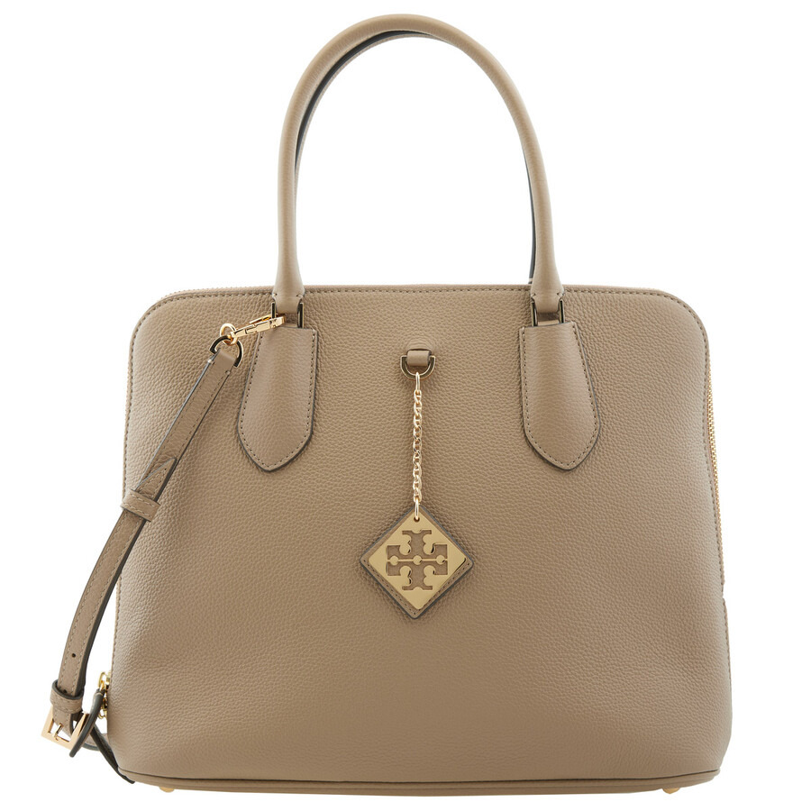 Tory Burch Ladies Satchel. SKU: 157378-250. Color: French Gray. The Tory Burch Pebbled Swing Satchel offers a timeless silhouette crafted from richly textured pebbled leather. Designed with both form and function in mind, it features tubular top handles for a structured carry and an adjustable, removable shoulder strap for hands-free versatility. The top zip closure is enhanced with an interior dog-clip cinch, allowing you to subtly adjust the bag’s shape. Inside, a zippered back wall pocket provides secure storage for small essentials. GENERAL Size Info: H: 10.4" x L: 12.6" x D: 3.7" Brand Type: Designer Color: French Gray INFORMATION Brand: Tory Burch Gender: Womens Model: 157378-250 DETAILS Material: Leather Closure: Zip-Up ADDITIONAL INFO UPC Code: 197865018728 Jomashop Sku: Z-5R7S2 Department: Bags Category: Satchels