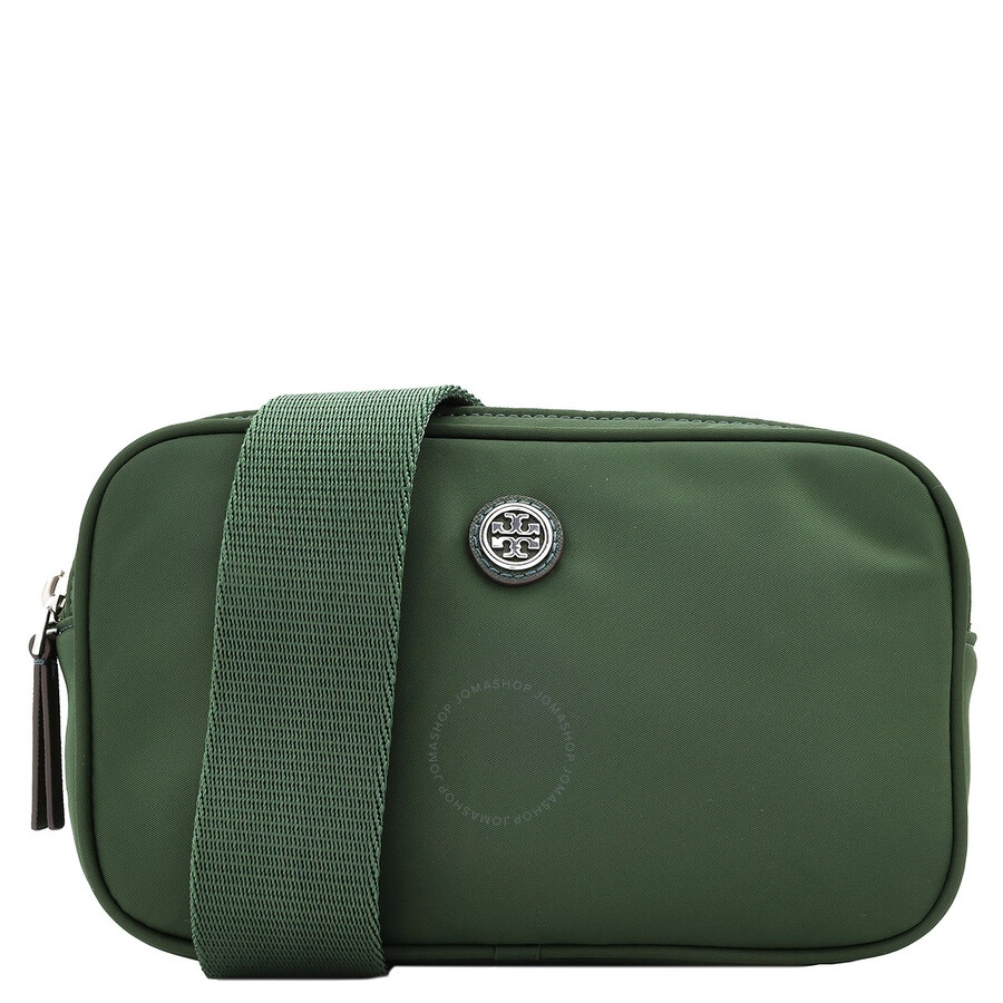 Tory Burch Ladies Belt Bag. SKU: 149530-312. Color: Basil. Size: H: 4.7" x L: 7.7" x D: 1.4". Tory Burch Virginia Nylon Belt Bag In Basil. The Virginia Belt Bag, crafted from recycled nylon, adds a sporty touch to fall outfits with its adjustable strap for versatile wear as a cross-body, shoulder, or waist bag, featuring a zipper main compartment, an exterior back pocket, and an interior zipper pocket. Outer: Recycled Nylon 100%. GENERAL Size Info: H: 4.7" x L: 7.7" x D: 1.4" Color: Basil INFORMATION Brand: Tory Burch Gender: Womens Model: 149530-312 DETAILS Material: Nylon Closure: Zip-Up DIMENSIONS Size: Mini ADDITIONAL INFO UPC Code: 197865062578 Jomashop Sku: Z-6G22C Department: Bags Category: Belt Bag