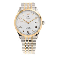 Silver-tone stainless steel case with a two-tone (silver-tone and rose gold-tone) stainless steel and 18kt rose gold bracelet. Fixed rose gold-tone 18kt rose gold bezel. White dial with rose gold-tone hands and Arabic numeral hour markers. Minute markers around the outer rim. Dial Type: Analog. Date display at the 3 o'clock position. Tudor Calibre 2824 Automatic movement, based upon ETA 2824, containing 25 Jewels, bitting at 28800 vph, and has a power reserve of approximately 38 hours. Scratch resistant sapphire crystal. Screw down crown. Solid case back. Round case shape, case size: 39 mm. Fold over clasp with a safety release. Water resistant at 100 meters / 330 feet. Functions: date, hour, minute, second. 1926 Series. Luxury watch style. Watch label: Swiss Made. Tudor 1926 Automatic White Dial Men's Watch M91551-0009. CASE Case Size: 39 Case Material: Stainless Steel Case Shape: Round Case Back: Solid BAND Band Material: Stainless Steel and 18kt Rose Gold Band Type: Bracelet Band Color: Two-tone (Silver-tone and Rose Gold-tone) Clasp: Fold Over with Safety Release DIAL Dial Color: White Type: Analog Crystal: Scratch Resistant Sapphire Hands: Rose Gold-tone Dial Markers: Arabic Numeral Second Markers: Minute Markers around the outer rim Bezel: Fixed Bezel Color: Rose Gold-tone Bezel Material: 18kt Rose Gold Crown: Screw Down INFORMATION Brand: Tudor Series: 1926 Collection Name: 1926 Gender: Mens Model: M91551-0009 Watch Label: Swiss Made Movement: Automatic Engine: Tudor Calibre 2824 Power Reserve: 38 hours FEATURES Water Resistance: 100 meters / 330 feet Calendar: Date display at the 3 o'clock position Functions: Date, Hour, Minute, Second Watch Features: Stainless Steel, Gold, Analog ADDITIONAL INFO Watch Style: Luxury Warranty: 2 Year Jomashop Warranty Jomashop Sku: TUDM915510009 Department: Watches