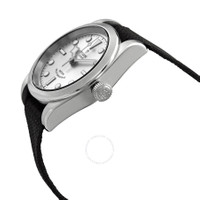 Stainless steel case with a black canvas strap. Fixed stainless steel bezel. Silver dial with luminous silver-tone hands and dot hour markers. Index markers at the 3, 6, 9 and 12 o'clock positions. Minute markers around the outer rim. Luminescent hands and markers. Tudor calibre T600 automatic movement with a 38-hour power reserve. Scratch resistant sapphire crystal. Screw down crown. Solid case back. Round case shape. Case size: 32 mm. Tang clasp. Water resistant at 150 meters / 500 feet. Functions: hour, minute, second. Black Bay Series. Sport watch style. Watch label: Swiss Made. Tudor Black Bay 32 Automatic Silver Dial Ladies Watch M79580-0008. INFORMATION Brand: Tudor Series: Black Bay Collection Name: Black Bay Gender: Womens Model: M79580-0008 Watch Label: Swiss Made Movement: Automatic Engine: Tudor Calibre T600 Power Reserve: 38 hours CASE Case Size: 32 mm Case Material: Stainless Steel Case Shape: Round Case Back: Solid BAND Band Material: Canvas Band Type: Strap Band Color: Black Clasp: Tang DIAL Dial Color: Silver Crystal: Scratch Resistant Sapphire Hands: Luminous Silver-tone Dial Markers: Dot Second Markers: Index Markers at the 3, 6, 9 and 12 o'clock positions. Minute Markers around the outer rim Luminiscence: Hands and Markers Bezel: Fixed Bezel Color: Silver-tone Bezel Material: Stainless Steel Crown: Screw Down FEATURES Water Resistance: 150 meters / 500 feet Functions: Hour, Minute, Second Watch Features: Stainless Steel ADDITIONAL INFO Watch Style: Sport Warranty: 2 Year Jomashop Warranty Jomashop Sku: TUD79580-0008 Item Variation: 79580-0008 Department: Watches Category: Watches