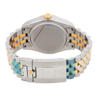 Silver-tone stainless steel case with a stainless steel and 18kt yellow gold bracelet. Fixed 18kt yellow gold bezel. Silver dial with gold-tone hands and diamond-index hour markers. Index marker appears at the 3, 6, 9 and 12 o'clock positions. Minute markers around the outer rim. Dial Type: Analog. Luminescent hands and markers. Tudor Calibre MT5602 Automatic movement, based upon Tudor MT5612, containing 26 Jewels, bitting at 28800 vph, and has a power reserve of approximately 70 hours. Scratch resistant sapphire crystal. Screw down crown. Solid case back. Round case shape, case size: 39 mm. Fold over clasp with a safety release. Water resistant at 100 meters / 330 feet. Functions: hour, minute, second, chronometer. Black Bay Series. Luxury watch style. Watch label: Swiss Made. Tudor Black Bay 39 Automatic Chronometer Diamond Silver Dial Men's Watch M79663-0007. INFORMATION Brand: Tudor Series: Black Bay Collection Name: Black Bay Gender: Mens Model: M79663-0007 Watch Label: Swiss Made Movement: Automatic Engine: Tudor Calibre MT5602 Power Reserve: 70 hours CASE Case Size: 39 mm Case Material: Stainless Steel Case Shape: Round Case Back: Solid BAND Band Material: Stainless Steel and 18kt Yellow Gold Band Type: Bracelet Band Color: Two-tone (Silver-tone and Yellow Gold-tone) Clasp: Fold Over with Safety Release DIAL Dial Color: Silver Type: Analog Crystal: Scratch Resistant Sapphire Hands: Gold-tone Dial Markers: Diamond-Index Second Markers: Index Marker appears at the 3, 6, 9 and 12 o'clock positions. Minute Markers around the outer rim Luminiscence: Hands and Markers Bezel: Fixed Bezel Material: 18kt Yellow Gold Crown: Screw Down FEATURES Water Resistance: 100 meters / 330 feet Functions: Hour, Minute, Second, Chronometer Watch Features: Diamond, Stainless Steel, Gold, Chronometer, Analog ADDITIONAL INFO Watch Style: Luxury Warranty: 2 Year Jomashop Warranty Jomashop Sku: TUD79663-0007 Department: Watches Category: Watches