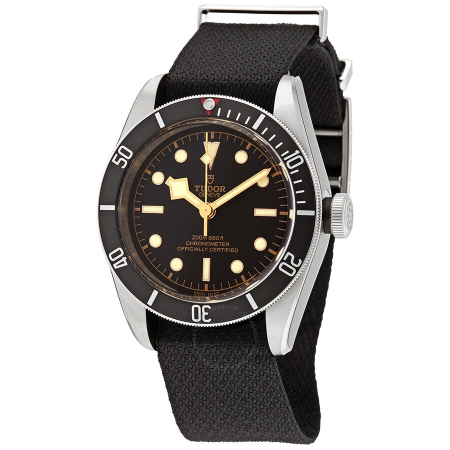 Stainless steel case with a black fabric strap. Uni-directional rotating stainless steel bezel with a matt black anodised aluminium ring. Black dial with luminous yellow gold-tone hands and dot hour markers. Minute markers around the outer rim. Dial Type: Analog. Luminescent hands and markers. Tudor calibre MT5602 automatic movement with a 70-hour power reserve. Scratch resistant sapphire crystal. Screw down crown. Solid case back. Round case shape. Cse size: 41 mm. Case thickness: 13 mm. Band width: 22 mm. Tang clasp. Water resistant at 200 meters / 660 feet. Functions: hour, minute, second. Luxury watch style. Watch label: Swiss Made. Tudor Black Bay Automatic Black Dial Men's Watch M79230N-0005. GENERAL Box Type: Original Box CASE Case Size: 41 Case Thickness: 13 mm Case Material: Stainless Steel Case Shape: Round Case Back: Solid BAND Band Material: Fabric Band Type: Strap Band Color: Black Band Width: 22 mm Clasp: Tang DIAL Dial Color: Black Type: Analog Crystal: Scratch Resistant Sapphire Hands: Luminous Yellow Gold-tone Snowflake Dial Markers: Dot Second Markers: Minute Markers around the outer rim Luminiscence: Hands and Markers Bezel: Uni-directional Rotating Bezel Color: Silver-tone Bezel Material: Stainless Steel with a Matt Black Anodised Aluminium Crown: Screw Down INFORMATION Brand: Tudor Series: Black Bay Collection Name: Black Bay Gender: Mens Model: M79230N-0005 Watch Label: Swiss Made Movement: Automatic Engine: Tudor Calibre MT5602 Power Reserve: 70 hours FEATURES Water Resistance: 200 meters / 660 feet Functions: Hour, Minute, Second Watch Features: Analog, Gold, Stainless Steel ADDITIONAL INFO Watch Style: Luxury Warranty: 2 Year Jomashop Warranty UPC Code: 842047178775 Jomashop Sku: TUD79230N-0005 Item Variation: 79230N-0005 Department: Watches Category: Watches