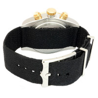 Silver-tone stainless steel case with a black fabric strap. Fixed yellow gold bezel with matt black anodised aluminium disc showing tachymeter markings. Champagne dial with yellow gold-tone hands and index hour markers. Minute markers around the outer rim. Dial Type: Analog. Luminescent hands and markers. Date display at the 6 o'clock position. Chronograph - two sub-dials displaying: 60 second and 45 minute. Tudor Calibre MT5813 Automatic movement, based upon Breitling B01, containing 47 Jewels, bitting at 28800 vph, and has a power reserve of approximately 70 hours. Scratch resistant sapphire crystal. Screw down crown. Solid case back. Round case shape, case size: 41 mm. Tang clasp. Water resistant at 200 meters / 660 feet. Functions: chronograph, column wheel, hour, minute, small second, power reserve indicator, chronometer. Black Bay Series. Luxury watch style. Watch label: Swiss Made. Tudor Black Bay Chronograph Automatic Chronometer Champagne Dial Men's Watch M79363N-0006. INFORMATION Brand: Tudor Series: Black Bay Collection Name: Black Bay Gender: Mens Model: M79363N-0006 Watch Label: Swiss Made Movement: Automatic Engine: Tudor Calibre MT5813 Power Reserve: 70 hours CASE Case Size: 41 mm Case Material: Stainless Steel Case Shape: Round Case Back: Solid BAND Band Material: Fabric Band Type: Strap Band Color: Black Clasp: Tang DIAL Dial Color: Champagne Type: Analog Crystal: Scratch Resistant Sapphire Hands: Yellow Gold-tone Dial Markers: Index Second Markers: Minute Markers around the outer rim Sub Dials: Two - 60 Second and 45 Minute Luminiscence: Hands and Markers Bezel: Fixed Bezel Material: Yellow Gold with Matt Black Anodised Aluminium Disc showing Tachymeter Markings Crown: Screw Down FEATURES Water Resistance: 200 meters / 660 feet Calendar: Date display at the 6 o'clock position Functions: Chronograph, Column Wheel, Hour, Minute, Small Second, Power Reserve Indicator, Chronometer Watch Features: Analog, Power Reserve Indicator, Chronometer, Gold, Stainless Steel, Chronograph ADDITIONAL INFO Watch Style: Luxury Warranty: 2 Year Jomashop Warranty Jomashop Sku: TUD79363N-0006 Item Variation: 79363N-0006 Department: Watches Category: Watches