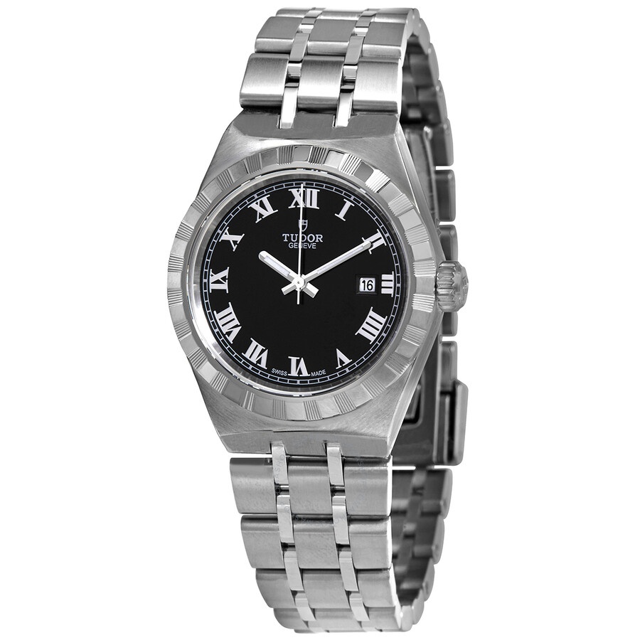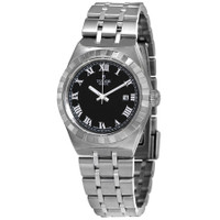 316L stainless steel case with a 316L stainless steel bracelet. Fixed 316L stainless steel bezel. Black dial with luminous silver-tone hands and Roman numeral hour markers. Minute markers around the outer rim. Dial Type: Analog. Luminescent hands. Date display at the 3 o'clock position. Tudor calibre T201 automatic movement, based upon ETA 2671, containing 25 Jewels, bitting at 28800 vph, and has a power reserve of approximately 38 hours. Scratch resistant sapphire crystal. Screw down crown. Solid case back. Round case shape. Case size: 28 mm. Fold over clasp with a safety release. Water resistant at 100 meters / 330 feet. Functions: date, hour, minute, second. Royal Series. Luxury watch style. Watch label: Swiss Made. Tudor Royal Automatic Black Dial Stainless Steel Ladies Watch M28300-0003. INFORMATION Brand: Tudor Series: Royal Collection Name: Royal Gender: Womens Model: M28300-0003 Watch Label: Swiss Made Movement: Automatic Engine: Tudor Calibre T201 Power Reserve: 38 hours CASE Case Size: 28 mm Case Material: 316L Stainless Steel Case Shape: Round Case Back: Solid BAND Band Material: 316L Stainless Steel Band Type: Bracelet Band Color: Silver-tone Clasp: Fold Over with Safety Release DIAL Dial Color: Black Type: Analog Crystal: Scratch Resistant Sapphire Hands: Luminous Silver-tone Dial Markers: Roman Numeral Second Markers: Minute Markers around the outer rim Luminiscence: Hands Bezel: Fixed Bezel Color: Silver-tone Bezel Material: 316L Stainless Steel Crown: Screw Down FEATURES Water Resistance: 100 meters / 330 feet Calendar: Date display at the 3 o'clock position Functions: Date, Hour, Minute, Second Watch Features: Stainless Steel, Analog ADDITIONAL INFO Watch Style: Luxury Warranty: 2 Year Jomashop Warranty Jomashop Sku: TUD28300-0003 Item Variation: 28300-0003 Department: Watches Category: Watches