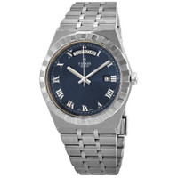 Silver-tone 316L steel case and bracelet. Fixed silver-tone 316L steel bezel. Blue dial with luminous silver-tone hands and Roman numeral hour markers. Minute markers around the outer rim. Dial Type: Analog. Luminescent hands. Date display at the 3 o'clock position. day of the week display centered on the 12 o'clock position. Tudor Calibre T603 Automatic movement, containing 25 Jewels, bitting at 28800 vph, and has a power reserve of approximately 38 hours. Scratch resistant sapphire crystal. Screw down crown. Solid case back. Round case shape, case size: 41 mm. Fold over clasp. Water resistant at 100 meters / 330 feet. Functions: date, day, hour, minute, second. Royal Series. Luxury watch style. Watch label: Swiss Made. Tudor Royal Automatic Blue Dial 41 mm Watch M28600-0005. INFORMATION Brand: Tudor Series: Royal Collection Name: Royal Gender: Mens Model: M28600-0005 Watch Label: Swiss Made Movement: Automatic Engine: Tudor Calibre T603 Power Reserve: 38 hours CASE Case Size: 41 mm Case Material: 316L Steel Case Shape: Round Case Back: Solid BAND Band Material: 316L Steel Band Type: Bracelet Band Color: Silver-tone Clasp: Fold Over DIAL Dial Color: Blue Type: Analog Crystal: Scratch Resistant Sapphire Hands: Luminous Silver-tone Dial Markers: Roman Numeral Second Markers: Minute Markers around the outer rim Luminiscence: Hands Bezel: Fixed Bezel Color: Silver-tone Bezel Material: 316L Steel Crown: Screw Down FEATURES Water Resistance: 100 meters / 330 feet Calendar: Date display at the 3 o'clock position. Day of the Week display centered on the 12 o'clock position Functions: Date, Day, Hour, Minute, Second Watch Features: Analog ADDITIONAL INFO Watch Style: Luxury Warranty: 2 Year Jomashop Warranty Jomashop Sku: TUD28600-0005 Item Variation: 28600-0005 Department: Watches Category: Watches