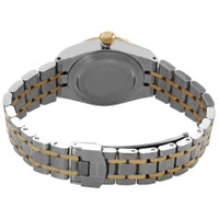 Stainless steel case with a stainless steel with 18kt yellow gold links bracelet. Fixed 18kt yellow gold bezel. Black dial with gold-tone hands and diamond hour markers. Roman numerals appear at the 3, 6, 9 and 12 o'clock positions. Minute markers around the outer rim. Dial Type: Analog. Date display at the 3 o'clock position. Tudor Calibre T201 Automatic movement, based upon ETA 2671, containing 25 Jewels, bitting at 28800 vph, and has a power reserve of approximately 38 hours. Scratch resistant sapphire crystal. Screw down crown. Solid case back. Round case shape, case size: 28 mm. Fold over clasp. Water resistant at 100 meters / 330 feet. Functions: date, hour, minute, second. Royal Series. Dress watch style. Watch label: Swiss Made. Tudor Royal Automatic Diamond Black Dial 28 mm Ladies Watch M28303-0005. INFORMATION Brand: Tudor Series: Royal Collection Name: Royal Gender: Womens Model: M28303-0005 Watch Label: Swiss Made Movement: Automatic Engine: Tudor Calibre T201 Power Reserve: 38 hours CASE Case Size: 28 mm Case Material: Stainless Steel Case Shape: Round Case Back: Solid BAND Band Material: Stainless Steel with 18kt Yellow Gold Links Band Type: Bracelet Band Color: Two-tone (Silver-tone and Gold-tone) Clasp: Fold Over DIAL Dial Color: Black Type: Analog Crystal: Scratch Resistant Sapphire Hands: Gold-tone Dial Markers: Diamond Second Markers: Roman Numerals appear at the 3, 6, 9 and 12 o'clock positions. Minute Markers around the outer rim Bezel: Fixed Bezel Color: Gold-tone Bezel Material: 18kt Yellow Gold Crown: Screw Down FEATURES Water Resistance: 100 meters / 330 feet Calendar: Date display at the 3 o'clock position Functions: Date, Hour, Minute, Second Watch Features: Diamond, Stainless Steel, Gold, Analog ADDITIONAL INFO Watch Style: Dress Warranty: 2 Year Jomashop Warranty Jomashop Sku: TUD28303-0005 Item Variation: 28303-0005 Department: Watches Category: Watches