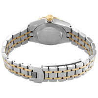Silver-tone stainless steel case with a silver-tone stainless steel with 18kt yellow gold links bracelet. Fixed 18kt yellow gold bezel. Mother of pearl dial with luminous yellow gold-tone hands and diamond hour markers. Roman numerals appear at the 3, 6, 9 and 12 o'clock positions. Minute markers around the outer rim. Dial Type: Analog. Luminescent hands. Date display at the 3 o'clock position. Tudor Calibre T201 Automatic movement, based upon ETA 2671, containing 25 Jewels, bitting at 28800 vph, and has a power reserve of approximately 38 hours. Scratch resistant sapphire crystal. Screw down crown. Solid case back. Round case shape, case size: 28 mm. Fold over clasp. Water resistant at 100 meters / 330 feet. Functions: date, hour, minute, second. Royal Series. Dress watch style. Watch label: Swiss Made. Tudor Royal Automatic Mother of Pearl Diamond 28 mm Ladies Watch M28303-0007. INFORMATION Brand: Tudor Series: Royal Collection Name: Royal Gender: Womens Model: M28303-0007 Watch Label: Swiss Made Movement: Automatic Engine: Tudor Calibre T201 Power Reserve: 38 hours CASE Case Size: 28 mm Case Material: Stainless Steel Case Shape: Round Case Back: Solid BAND Band Material: Stainless Steel with 18kt Yellow Gold Links Band Type: Bracelet Band Color: Silver-tone Clasp: Fold Over DIAL Dial Color: Mother of Pearl Type: Analog Crystal: Scratch Resistant Sapphire Hands: Luminous Yellow Gold-tone Dial Markers: Diamond Second Markers: Roman Numerals appear at the 3, 6, 9 and 12 o'clock positions. Minute Markers around the outer rim Luminiscence: Hands Bezel: Fixed Bezel Color: Gold-tone Bezel Material: 18kt Yellow Gold Crown: Screw Down FEATURES Water Resistance: 100 meters / 330 feet Calendar: Date display at the 3 o'clock position Functions: Date, Hour, Minute, Second Watch Features: Diamond, Stainless Steel, Gold, Analog ADDITIONAL INFO Watch Style: Dress Warranty: 2 Year Jomashop Warranty Jomashop Sku: TUD28303-0007 Item Variation: 28303-0007 Department: Watches Category: Watches