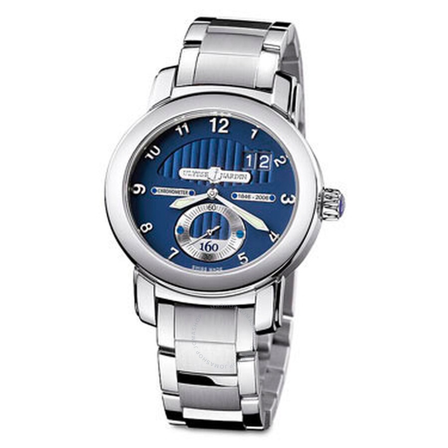 18k white gold case with a 18k white gold bracelet. Fixed bezel. Blue dial with silver-tone hands and Arabic numeral hour markers. Dial Type: Analog. Date display at the 2 o'clock position. 60-seconds. Automatic movement. Caliber 160 engine. Scratch resistant anti reflective sapphire crystal. Skeleton transparent exhibition see through case back. Case diameter: 43mm x 40.5mm. Case thickness: 11.7mm. Oval case shape. Deployment with push button clasp. Water resistant at 50 meters / 165 feet. Functions: date, hour, minute, second. Luxury watch style. Watch label: Swiss Made. Ulysse Nardin 160th Anniversary Blue Dial 18K White Gold Automatic Men's Watch 1600-100-8. GENERAL Color: Blue / Gold / Skeleton / White CASE Case Size: 43 Case Thickness: 11.7 mm Case Material: 18kt White Gold Case Shape: Oval Case Back: Skeleton Transparent Exhibition See Through BAND Band Material: 18kt White Gold Band Type: Bracelet Band Color: White Gold-tone Clasp: Deployment with Push Button Release DIAL Dial Color: Blue Type: Analog Crystal: Anti-Reflective Sapphire Hands: Silver-tone Dial Markers: Arabic Numeral Sub Dials: One - Small Second Bezel: Fixed Bezel Material: 18kt White Gold INFORMATION Brand: Ulysse Nardin Series: 160Th Anniversary Collection Name: 160th Anniversary Gender: Mens Model: 1600-100-8 Watch Label: Swiss Made Movement: Automatic Engine: Ulysse Nardin Calibre UN-160 Power Reserve: 50 hours FEATURES Water Resistance: 50 meters / 165 feet Calendar: Date display at the 2 o'clock position Functions: Date, Hour, Minute, Second Watch Features: Gold, Analog ADDITIONAL INFO Watch Style: Luxury Warranty: 2 Year Jomashop Warranty Jomashop Sku: UN1600-100-8 Item Variation: 1600 100 8, 1600.100.8, 16001008 Department: Watches Category: Watches
