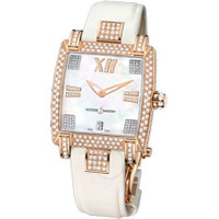18kt rose gold case with a satin bracelet. Fixed diamond-set bezel. Mother of pearl dial with rose gold-tone hands and Roman numeral hour markers. Dial Type: Analog. Date display at the 6 o'clock position. Automatic movement. Scratch resistant sapphire crystal. Pull / push crown. Skeleton transparent exhibition see through case back. Case diameter: 34mm x 35.4mm. Case thickness: 9.5mm. Rectangle case shape. Hidden folding clasp. Water resistant at 50 meters / 165 feet. Functions: date, hour, minute, second. Dress watch style. Watch label: Swiss Made. Ulysse Nardin Caprice Mother of Pearl Dial Satin Strap Automatic Ladies Watch 136-91FC-301. GENERAL Color: Gold / Mother of pearl / Rose / Skeleton INFORMATION Brand: Ulysse Nardin Series: Caprice Collection Name: Caprice Gender: Womens Model: 136-91FC-301 Watch Label: Swiss Made Movement: Automatic Engine: Ulysse Nardin Calibre UN-13 Power Reserve: 42 hours CASE Case Size: 35.4 mm x 34 mm Case Thickness: 9.5 mm Case Material: 18kt Rose Gold Case Shape: Rectangle Case Back: Skeleton Transparent Exhibition See Through BAND Band Material: Satin Band Type: Strap Band Color: White Clasp: Hidden Fold Over DIAL Dial Color: Mother of Pearl Type: Analog Crystal: Scratch Resistant Sapphire Hands: Rose Gold-tone Dial Markers: Roman Numeral Bezel: Fixed diamond-set Crown: Pull / Push FEATURES Water Resistance: 50 meters / 165 feet Calendar: Date display at the 6 o'clock position Functions: Date, Hour, Minute, Second Watch Features: Diamond, Gold, Analog ADDITIONAL INFO Watch Style: Dress Warranty: 2 Year Jomashop Warranty Jomashop Sku: UN136-91FC-301 Item Variation: 136 91FC 301, 136.91FC.301, 13691FC301 Department: Watches Category: Watches