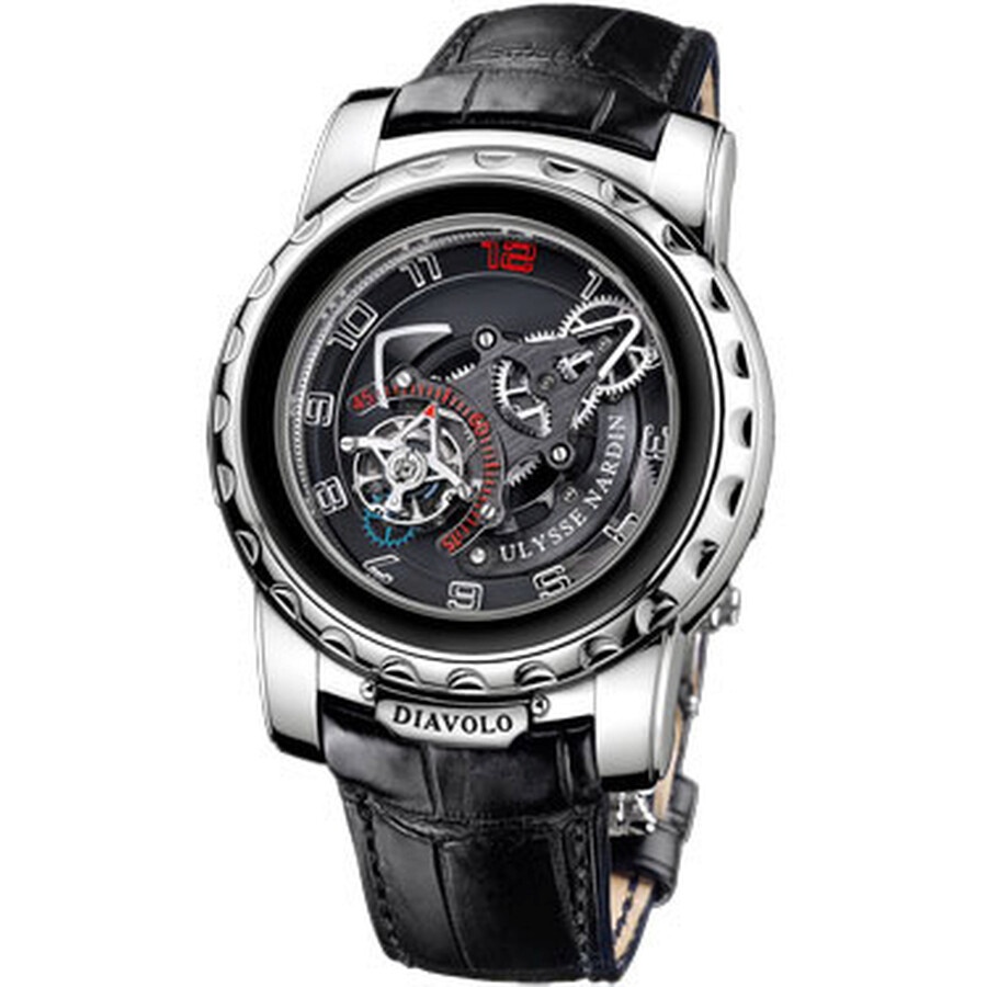 18 kt white gold case with a alligator leather strap. Fixed bezel. Black dial. Dial Type: Analog. Automatic movement. Cal. un-208 engine with about 7 days / 168 hours power reserve. Scratch resistant sapphire crystal. Case diameter: 44.5mm. Round case shape. Folding clasp. Functions: hour, minute, second. Luxury watch style. Item Variations: 2080 115, 2080.115, 2080115. Ulysse Nardin Freak Diavolo Black Dial Alligator Leather Automatic Men's Watch 2080-115. GENERAL Color: Black / Gold / White CASE Case Size: 44 Case Material: 18kt White Gold Case Shape: Round BAND Band Material: Alligator Leather Band Type: Strap Band Color: Black Clasp: Fold Over DIAL Dial Color: Black Type: Analog Crystal: Scratch Resistant Sapphire Bezel: Fixed Bezel Material: 18kt White Gold INFORMATION Brand: Ulysse Nardin Series: Freak Diavolo Collection Name: Freak Diavolo Gender: Mens Model: 2080-115 Watch Label: Swiss Made Movement: Automatic Engine: Ulysse Nardin Calibre UN-208 Power Reserve: 168 hours / 7 days FEATURES Functions: Hour, Minute, Second Watch Features: Leather, Gold, Analog, Alligator Leather ADDITIONAL INFO Watch Style: Luxury Warranty: 2 Year Jomashop Warranty Jomashop Sku: UN2080-115 Item Variation: 2080 115, 2080.115, 2080115 Department: Watches Category: Watches