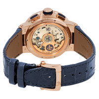 18kt rose gold case with a blue alligator leather strap. Fixed coin edge 18kt rose gold bezel. Blue dial with luminous rose gold-tone spade-shape hands and Roman numeral hour markers. Minute markers around the outer rim. Dial Type: Analog. Luminescent hands. Date display at the 6 o'clock position. Three sub-dials displaying: 60 second/month, 30 minute and 12 hour. Ulysse Nardin Calibre UN-153 Automatic movement, based upon Ulysse Nardin UN-150, containing 53 Jewels, bitting at 28800 vph, and has a power reserve of approximately 52 hours. Scratch resistant sapphire crystal. Screw down crown. Transparent case back. Round case shape, case size: 43 mm, case thickness: 15.20 mm. Band width: 22 mm. Fold over with push button release clasp. Water resistant at 100 meters / 330 feet. Functions: chronograph, month, date, hour, minute, second, annual calendar. Marine Chronograph Series. Luxury watch style. Watch label: Swiss Made. Ulysse Nardin Marine Chronograph Automatic Men's Watch 1532-150/43. CASE Case Size: 43 Case Thickness: 15.20 mm Case Material: 18kt Rose Gold Case Shape: Round Case Back: Transparent BAND Band Material: Alligator Leather Band Type: Strap Band Color: Blue Band Width: 22 mm Clasp: Fold Over with Push Button Release DIAL Dial Color: Blue Type: Analog Crystal: Scratch Resistant Sapphire Hands: Luminous Rose Gold-tone Spade-shape Dial Markers: Roman Numeral Second Markers: Minute Markers around the outer rim Sub Dials: Three - 60 Second/Month, 30 Minute and 12 Hour Luminiscence: Hands Bezel: Fixed Coin Edge Bezel Material: 18kt Rose Gold Crown: Screw Down INFORMATION Brand: Ulysse Nardin Series: Marine Chronograph Collection Name: Marine Chronograph Gender: Mens Model: 1532-150/43 Watch Label: Swiss Made Movement: Automatic Engine: Ulysse Nardin Calibre UN-153 Power Reserve: 52 hours FEATURES Water Resistance: 100 meters / 330 feet Calendar: Date display at the 6 o'clock position Functions: Chronograph, Month, Date, Hour, Minute, Second, Annual Calendar Watch Features: Alligator Leather, Analog, Annual Calendar, Month, Gold, Leather, Chronograph ADDITIONAL INFO Watch Style: Luxury Warranty: 2 Year Jomashop Warranty UPC Code: 842047140499 Jomashop Sku: UN1532-150-43 Department: Watches Category: Watches