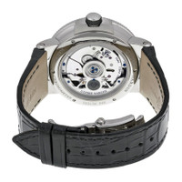 Silver-tone titanium case with a black alligator leather strap. Fixed silver-tone titanium bezel. Black dial with luminous silver-tone spade-shape hands and Roman numeral hour markers. Minute markers around the outer rim. Dial Type: Analog. Luminescent hands and markers. Date display at the 6 o'clock position. Two - 60 second and power reserve indicator subdials. Ulysse Nardin Calibre UN-118 Automatic movement, based upon Ulysse Nardin UN-66, containing 50 Jewels, bitting at 28800 vph, and has a power reserve of approximately 60 hours. Scratch resistant sapphire crystal. Screw down with rubber inset crown. Transparent case back. Round case shape, case size: 45 mm, case thickness: 13.85 mm. Band width: 20.3 mm, band length: 8.25 inches. Deployment clasp. Water resistant at 200 meters / 660 feet. Functions: date, hour, minute, second, power reserve indicator, chronometer. Luxury watch style. Watch label: Swiss Made. Ulysse Nardin Marine Chronometer Automatic Men's Watch 1183-122-42-V2. CASE Case Size: 45 Case Thickness: 13.85 mm Case Material: Titanium Case Shape: Round Case Back: Transparent BAND Band Material: Alligator Leather Band Type: Strap Band Color: Black Band Length: 8.25 inches Band Width: 20.3 mm Clasp: Deployment DIAL Dial Color: Black Type: Analog Crystal: Scratch Resistant Sapphire Hands: Luminous Silver-tone Spade-shape Dial Markers: Roman Numeral Second Markers: Minute Markers around the outer rim Sub Dials: Two - Small Second and Power Reserve Indicator Luminiscence: Hands and Markers Bezel: Fixed Bezel Color: Silver-tone Bezel Material: Titanium Crown: Screw Down with Rubber Inset INFORMATION Brand: Ulysse Nardin Series: Marine Chronometer Collection Name: Marine Chronometer Gender: Mens Model: 1183-122/42 V2 Watch Label: Swiss Made Movement: Automatic Engine: Ulysse Nardin Calibre UN-118 Power Reserve: 60 hours FEATURES Water Resistance: 200 meters / 660 feet Calendar: Date display at the 6 o'clock position Functions: Date, Hour, Minute, Second, Power Reserve Indicator, Chronometer Watch Features: Alligator Leather, Analog, Power Reserve Indicator, Chronometer, Leather, Rubber, Titanium ADDITIONAL INFO Watch Style: Luxury Warranty: 2 Year Jomashop Warranty UPC Code: 845960065023 Jomashop Sku: UN1183-122-42-V2 Department: Watches Category: Watches