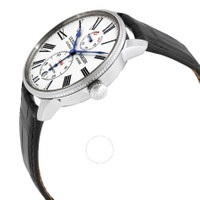 Stainless steel case with a black (alligator) leather strap. Fixed coin edge silver-tone stainless steel bezel. White lacquered dial with blue spade-shape hands and Roman numeral hour markers. Minute markers around the outer rim. Dial Type: Analog. Date display at the 6 o'clock position. 60 seconds sub-dial. Power reserve indicator. Ulysse Nardin calibre UN-118 automatic movement, based upon Ulysse Nardin UN-66, containing 50 Jewels, bitting at 28800 vph, and has a power reserve of approximately 60 hours. Scratch resistant sapphire crystal. Screw down crown. Transparent case back. Round case shape. Case size: 42 mm. Case thickness: 11.4 mm. Fold over clasp with a push button release. Water resistant at 50 meters / 165 feet. Functions: date, hour, minute, second, power reserve. Marine Chronometer Series. Luxury watch style. Watch label: Swiss Made. Ulysse Nardin Marine Chronometer Automatic Men's Watch 1183-310/40. CASE Case Size: 42 Case Thickness: 11.4 mm Case Material: Stainless Steel Case Shape: Round Case Back: Transparent BAND Band Material: (Alligator) Leather Band Type: Strap Band Color: Black Clasp: Fold Over with Push Button Release DIAL Dial Color: White Lacquered Type: Analog Crystal: Scratch Resistant Sapphire Hands: Blue Spade-shape Dial Markers: Roman Numeral Second Markers: Minute Markers around the outer rim Sub Dials: Small Seconds. Power Reserve Indicator Bezel: Fixed Coin Edge Bezel Color: Silver-tone Bezel Material: Stainless Steel Crown: Screw Down INFORMATION Brand: Ulysse Nardin Series: Marine Chronometer Collection Name: Marine Chronometer Gender: Mens Model: 1183-310/40 Watch Label: Swiss Made Movement: Automatic Engine: Ulysse Nardin Calibre UN-118 Power Reserve: 60 hours FEATURES Water Resistance: 50 meters / 165 feet Calendar: Date display at the 6 o'clock position Functions: Date, Hour, Minute, Second, Power Reserve Watch Features: Alligator Leather, Analog, Power Reserve Indicator, Chronometer, Leather, Stainless Steel ADDITIONAL INFO Watch Style: Luxury Warranty: 2 Year Jomashop Warranty UPC Code: 842047176658 Jomashop Sku: UN1183-310-40 Department: Watches Category: Watches