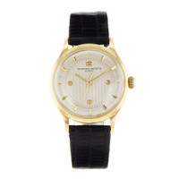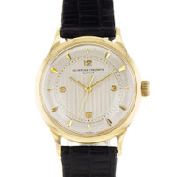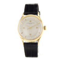 Yellow gold-tone 18kt yellow gold case with a black leather strap. Fixed yellow gold-tone 18kt yellow gold bezel. Yellow dial with yellow gold-tone hands and index hour markers. Minute scale around the inner rim. Dial Type: Analog. Hand wind movement. Round case shape, case size: 35 mm. Buckle clasp. Functions: hour, minute, second. Patrimony Series. Luxury watch style. Watch label: Swiss Made. Pre-owned Vacheron Constantin Patrimony Hand Wind Men's Watch 4301. GENERAL Year: Circa 1948 Comments: This Vacheron Constantin Patrimony, reference number 4301, has a manufacturer year of Circa 1948. Box not included, Papers not included . This watch has a 35mm Yellow Gold Case with Yellow gold bezel, Yellow Arabic numerals dial and Leather bracelet with Buckle. The Manual winding movement has Time Only function. The wrist measures 7.5 inches or 19.05 centimeters. The condition is Very Good The watch listed is in stock and the pictures shown are of the actual watch for sale. All of our watches Preowned Item Condition: Very Good CASE Case Material: 18kt Yellow Gold Case Shape: Round BAND Band Material: Leather Band Type: Strap Band Color: Black Clasp: Buckle DIAL Dial Color: Yellow Type: Analog Hands: Yellow Gold-tone Dial Markers: Index Second Markers: Minute Scale around the inner rim Bezel: Fixed Bezel Color: Yellow Gold-tone Bezel Material: 18kt Yellow Gold INFORMATION Brand: Vacheron Constantin Series: Patrimony Collection Name: Patrimony Gender: Mens Model: 4301 Watch Label: Swiss Made Movement: Hand Wind FEATURES Functions: Hour, Minute, Second Watch Features: Analog, Gold, Leather ADDITIONAL INFO Watch Style: Luxury Warranty: 1 Year Jomashop Warranty Jomashop Sku: PRE-P-VC102177 Department: Watches Category: Watches