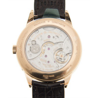 18kt rose gold case with a dark brown leather strap. Fixed 18kt rose gold bezel. Silver dial with rose gold-tone hands and Roman numeral hour markers. Dial Type: Analog. Pointer date. One subdial displaying: small second (inner moonphase display). Vacheron Constantin Calibre 4400 QCL Hand Wind movement, containing 253 Jewels, bitting at 28800 vph, and has a power reserve of approximately 65 hours. Scratch resistant sapphire crystal. Transparent case back. Round case shape, case size: 40 mm, case thickness: 10.35 mm. Water resistant at 30 meters / 100 feet. Functions: perpetual calendar, month, date, day, hour, minute, small second. Additional Info: limited edition of 200 pieces. Historiques Triple Calendrier Series. Luxury watch style. Watch label: Swiss Made. Vacheron Constantin Historiques Triple calendrier Silver Dial Men's Watch 3100V/000R-B359. CASE Case Size: 40 Case Thickness: 10.35 mm Case Material: 18kt Rose Gold Case Shape: Round Case Back: Transparent BAND Band Material: Leather Band Type: Strap Band Color: Dark Brown DIAL Dial Color: Silver Type: Analog Crystal: Scratch Resistant Sapphire Hands: Rose Gold-tone Dial Markers: Roman Numeral Sub Dials: One - Small Second (inner Moonphase Display) Bezel: Fixed Bezel Material: 18kt Rose Gold INFORMATION Brand: Vacheron Constantin Series: Historiques Triple Calendrier Collection Name: Historiques Triple calendrier Gender: Mens Model: 3100V/000R-B359 Watch Label: Swiss Made Movement: Hand Wind Engine: Vacheron Constantin Calibre 4400 QCL Power Reserve: 65 hours FEATURES Water Resistance: 30 meters / 100 feet Calendar: Pointer Date Functions: Perpetual Calendar, Month, Date, Day, Hour, Minute, Small Second Watch Features: Leather, Gold, Perpetual, Month, Analog ADDITIONAL INFO Watch Style: Luxury Warranty: 2 Year Jomashop Warranty Additional Info: Limited Edition of 200 pieces Jomashop Sku: VC3100V000R-B359 Department: Watches Category: Watches