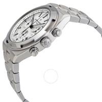 Stainless steel case with a stainless steel bracelet. Fixed stainless steel bezel. Silver dial with luminous black hands and index hour markers. Minute markers around the outer rim. Dial Type: Analog. Luminescent hands and markers. Date display between the 4 and 5 o'clock positions. Chronograph - three sub-dials displaying: 60 second, 30 minute and 12 hour. Vacheron Constantin calibre 5200 Automatic movement, containing 54 Jewels, composed of 263 parts, bitting at 28800 vph, and has a power reserve of approximately 52 hours. Scratch resistant sapphire crystal. Screw down crown. Transparent case back. Round case shape. Case size: 42.5 mm. Case thickness: 13.7 mm. Deployment clasp. Water resistant at 150 meters / 500 feet. Functions: chronograph, date, hour, minute, second. Overseas Series. Luxury watch style. Watch label: Swiss Made. Vacheron Constantin Overseas Automatic Chronograph Men's Watch 5500V/110A-B075. CASE Case Size: 42 Case Thickness: 13.7 mm Case Material: Stainless Steel Case Shape: Round Case Back: Transparent BAND Band Material: Stainless Steel Band Type: Bracelet Band Color: Silver-tone Clasp: Deployment DIAL Dial Color: Silver Type: Analog Crystal: Scratch Resistant Sapphire Hands: Luminous Black Dial Markers: Index Second Markers: Minute Markers around the outer rim Sub Dials: Three - 60 Second, 30 Minute and 12 Hour Luminiscence: Hands and Markers Bezel: Fixed Bezel Color: Silver-tone Bezel Material: Stainless Steel Crown: Screw Down INFORMATION Brand: Vacheron Constantin Series: Overseas Collection Name: Overseas Gender: Mens Model: 5500V/110A-B075 Watch Label: Swiss Made Movement: Automatic Engine: Vacheron Constantin Calibre 5200 Power Reserve: 52 hours FEATURES Water Resistance: 150 meters / 500 feet Calendar: Date display between the 4 and 5 o'clock positions Functions: Chronograph, Date, Hour, Minute, Second Watch Features: Chronograph, Stainless Steel, Analog ADDITIONAL INFO Watch Style: Luxury Warranty: 2 Year Jomashop Warranty UPC Code: 7630007368426 Jomashop Sku: VC5500V110A-B075 Department: Watches Category: Watches