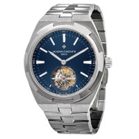 Stainless steel case with a stainless steel bracelet. Fixed stainless steel bezel. Blue (tourbillon) dial with luminous silver-tone hands and index hour markers. Arabic numeral minute markers (at 5 minute intervals). Minute markers around the outer rim. Dial Type: Analog. Luminescent hands and markers. One subdial displaying: small second/tourbillon. Vacheron Constantin calibre 2160 automatic movement, containing 30 Jewels, composed of 188 parts, bitting at 19800 vph, and has a power reserve of approximately 80 hours. Scratch resistant sapphire crystal. Transparent case back. Round case shape. Case size: 42.50 mm. Case thickness: 10.39 mm. Deployment clasp. Water resistant at 50 meters / 165 feet. Functions: hour, minute, tourbillon, small seconds on tourbillon carriage. Overseas Series. Luxury watch style. Watch label: Swiss Made. Vacheron Constantin Overseas Tourbillon Automatic Blue Dial Men's Watch 6000V/110A-B544. CASE Case Size: 42.5 mm Case Thickness: 10.39 mm Case Material: Stainless Steel Case Shape: Round Case Back: Transparent BAND Band Material: Stainless Steel Band Type: Bracelet Band Color: Silver-tone Clasp: Deployment DIAL Dial Color: Blue (Tourbillon) Type: Analog Crystal: Scratch Resistant Sapphire Hands: Luminous Silver-tone Dial Markers: Index Second Markers: Arabic Numeral Minute Markers (at 5 minute intervals). Minute Markers around the outer rim Sub Dials: One - Small Second/Tourbillon Luminiscence: Hands and Markers Bezel: Fixed Bezel Color: Silver-tone Bezel Material: Stainless Steel INFORMATION Brand: Vacheron Constantin Series: Overseas Collection Name: Overseas Gender: Mens Model: 6000V/110A-B544 Watch Label: Swiss Made Movement: Automatic Engine: Vacheron Constantin Calibre 2160 Power Reserve: 80 hours FEATURES Water Resistance: 50 meters / 165 feet Functions: Hour, Minute, Tourbillon, Small Seconds on Tourbillon Carriage Watch Features: Tourbillon, Stainless Steel, Analog ADDITIONAL INFO Watch Style: Luxury Warranty: 2 Year Jomashop Warranty Jomashop Sku: VC6000V110A-B544 Department: Watches Category: Watches