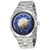 Stainless steel case with a stainless steel bracelet. Fixed stainless steel bezel. Blue dial with luminous silver-tone hands and Arabic numeral hour markers. World time cities around an inner ring. 24 hour markers. Minute markers around the outer rim. Dial Type: Analog. Luminescent hands. Vacheron Constantin calibre 2460 WT/1 automatic movement, containing 27 Jewels, composed of 255 parts, bitting at 28800 vph, and has a power reserve of approximately 40 hours. Scratch resistant sapphire crystal. Screw down crown. Transparent case back. Round case shape. Case size: 43.5 mm. Case thickness: 12.6 mm. Fold over clasp. Water resistant at 150 meters / 500 feet. Functions: hour, minute, second, world time, day and night indicator. Overseas World Time Series. Travel watch style. Watch label: Swiss Made. Vacheron Constantin Overseas World Time Automatic Men's Watch 7700V/110A-B172. CASE Case Size: 43 Case Thickness: 12.6 mm Case Material: Stainless Steel Case Shape: Round Case Back: Transparent BAND Band Material: Stainless Steel Band Type: Bracelet Band Color: Silver-tone Clasp: Fold Over DIAL Dial Color: Blue Type: Analog Crystal: Scratch Resistant Sapphire Hands: Luminous Silver-tone Dial Markers: Arabic Numeral Second Markers: World Time Cities around an inner ring. 24 Hour Markers. Minute Markers around the outer rim Luminiscence: Hands Bezel: Fixed Bezel Color: Silver-tone Bezel Material: Stainless Steel Crown: Screw Down INFORMATION Brand: Vacheron Constantin Series: Overseas World Time Collection Name: Overseas World Time Gender: Mens Model: 7700V/110A-B172 Watch Label: Swiss Made Movement: Automatic Engine: Vacheron Constantin Calibre 2460 WT/1 Power Reserve: 40 hours FEATURES Water Resistance: 150 meters / 500 feet Functions: Hour, Minute, Second, World Time, Day and Night Indicator Watch Features: Stainless Steel, World Time, Analog ADDITIONAL INFO Watch Style: Travel Warranty: 2 Year Jomashop Warranty UPC Code: 7630007368631 Jomashop Sku: VC7700V110A-B172 Department: Watches Category: Watches