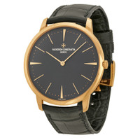 18kt 5n pink gold case with a black alligator leather strap. Fixed 18kt 5n pink gold bezel. Grey dial with rose gold-tone hands and index hour markers. Minute markers around the outer rim. Dial Type: Analog. Vacheron Constantin Calibre 1400 Hand Wind movement, containing 20 Jewels, composed of 98 parts, bitting at 28800 vph, and has a power reserve of approximately 40 hours. Scratch resistant sapphire crystal. Pull / push crown. Solid case back. Round case shape, case size: 40 mm, case thickness: 6.79 mm. Tang clasp. Water resistant at 30 meters / 100 feet. Functions: hour, minute,. Patrimony Series. Luxury watch style. Watch label: Swiss Made. Item Variations: 81180000R-9162 , 81180/000R-9162 , X81R8614. Vacheron Constantin Patrimony Grey Dial 18k Pink Gold Manual Men's Watch 81180000R-9162. CASE Case Size: 40 Case Thickness: 6.79 mm Case Material: 18kt 5N Pink Gold Case Shape: Round Case Back: Solid BAND Band Material: Alligator Leather Band Type: Strap Band Color: Black Clasp: Tang DIAL Dial Color: Grey Type: Analog Crystal: Scratch Resistant Sapphire Hands: Rose Gold-tone Dial Markers: Index Second Markers: Minute Markers around the outer rim Bezel: Fixed Bezel Material: 18kt 5N Pink Gold Crown: Pull / Push INFORMATION Brand: Vacheron Constantin Series: Patrimony Collection Name: Patrimony Gender: Mens Model: 81180/000R-9162 Watch Label: Swiss Made Movement: Hand Wind Engine: Vacheron Constantin Calibre 1400 Power Reserve: 40 hours FEATURES Water Resistance: 30 meters / 100 feet Functions: Hour, Minute, Watch Features: Leather, Gold, Analog, Alligator Leather ADDITIONAL INFO Watch Style: Luxury Warranty: 2 Year Jomashop Warranty UPC Code: 7630007366064 Jomashop Sku: VC81180000R-9162 Item Variation: 81180000R-9162 , 81180/000R-9162 , X81R8614 Department: Watches Category: Watches