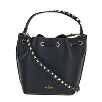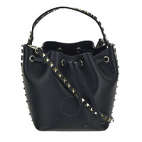 Valentino Ladies Bucket Bag. SKU: 5W2B0L31VSF0NO. Color: Black. Valentino Drawstring Rockstud Bucket Bag. This bag features a bucket design, a single top handle, a matching detachable shoulder strap, a drawstring closure, light gold metalware, and hammered leather. 100% leather. Made in Italy. GENERAL Brand Type: Designer Size Info: L: 19cm × H: 19cm × D: 12cm Color: Black INFORMATION Brand: Valentino Garavani Gender: Womens Model: 5W2B0L31VSF0NO DETAILS Material: Leather ADDITIONAL INFO UPC Code: 8052576033892 Jomashop Sku: Z-B542P Department: Bags Category: Bucket Bag