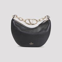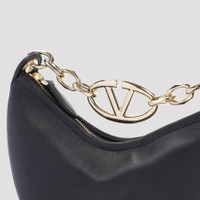 Valentino Garavani Black Leather Small Hobo Vlogo Moon Handbag