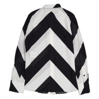 Valentino Ladies Tops. Fashion category: T-Shirts & Henleys. SKU: 3B0AB5T68B70AN. Color: Avorio Nero. Valentino Garavani Crepe De Chine Strhype Shirt. This silk blouse features a chevron print with scarf detailing, a concealed front fastening, long sleeves, and a straight hem, blending elegance with a sophisticated design. 100% silk. Made in Italy. GENERAL Color: Avorio Nero INFORMATION Brand: Valentino Garavani Gender: Womens Model: 3B0AB5T68B70AN DETAILS Category: Tops Apparel Type: T-Shirts & Henleys ADDITIONAL INFO Jomashop Sku: -VAL3B0AB5T68B70AN Department: Apparel
