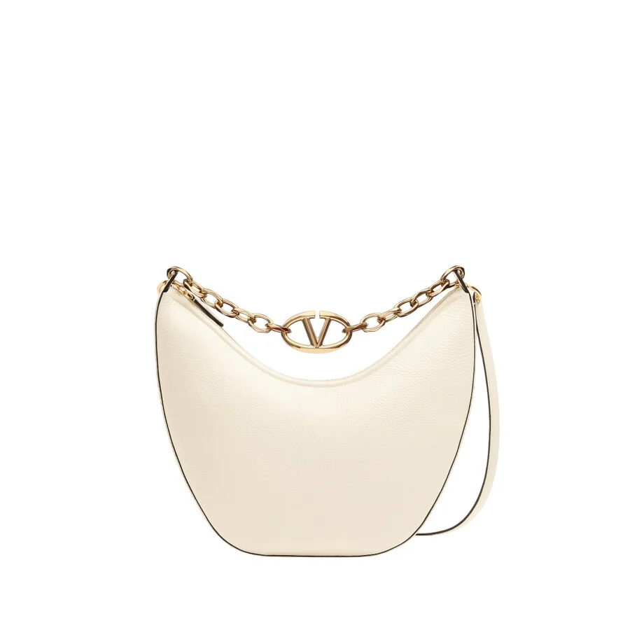 Valentino Garavani Ivory Leather Medium Hobo Vlogo Moon Shoulder Bag