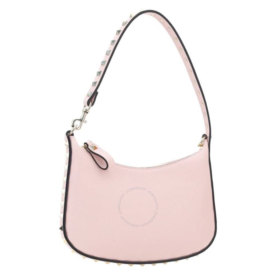 Valentino Ladies Hobo. Rockstud series. SKU: 3W0P0Z66TAG16Q. Color: Rose. Size: W 7.87" x H 5.12" x D 0.98". Valentino Garavani Rockstud Mini Leather Hobo Bag. Crafted from calf leather with a grained texture, this bag features striking gold-tone Rockstud accents and a logo print on the front. It includes a secure top zip fastening, a single shoulder strap for easy carrying, and a spacious main compartment for your essentials. 100% Leather. Made in Italy. GENERAL Size Info: W 7.87" x H 5.12" x D 0.98" Color: Rose Collection Name: Rockstud INFORMATION Brand: Valentino Garavani Series: Rockstud Gender: Womens Model: 3W0P0Z66TAG16Q ADDITIONAL INFO UPC Code: 8052962383372 Jomashop Sku: Z-FPDMN Department: Bags Category: Hobo