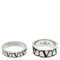 Valentino Men's Rings. SKU: 5Y2J0S08GMUP0N. Color: Palladium/Black. Ring style: Band. Valentino Garavani Toile Iconographe Ring Set. Valentino Garavani ring set, crafted in Italy from premium metal. The design features the brand’s iconic black VLogo pattern set against a sleek silver-tone finish, creating a bold and contemporary look. Made In Italy. GENERAL Brand Type: Designer Color: Palladium/Black INFORMATION Brand: Valentino Garavani Gender: Mens Model: 5Y2J0S08GMUP0N DETAILS Size Info: 22 Ring Style: Band ADDITIONAL INFO UPC Code: 8052962874245 Jomashop Sku: Z-MP4P7 Department: Jewelry Category: Rings