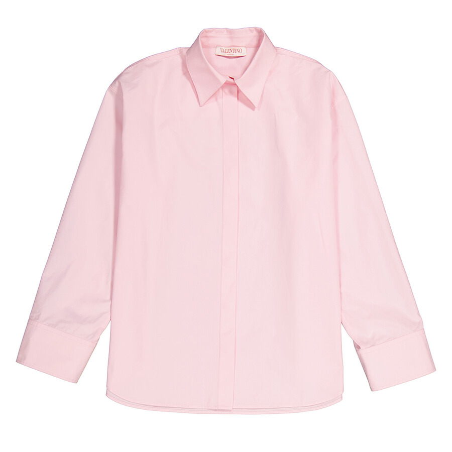 Valentino Ladies Tops. Fashion category: Casual Button-Downs. SKU: 3B0AB5L25DNZKS. Color: Taffy. Valentino Ladies Taffy Cotton Poplin Button Down Shirt. Crafted from crisp poplin fabric, this shirt features a concealed front button closure, buttoned cuffs, long sleeves, a pointed collar, and a subtle curved hem. Made in Italy. GENERAL Color: Taffy INFORMATION Brand: Valentino Garavani Gender: Womens Model: 3B0AB5L25DNZKS DETAILS Category: Tops Apparel Type: Casual Button-Downs ADDITIONAL INFO Jomashop Sku: -VAL3B0AB5L25DNZKS Department: Apparel
