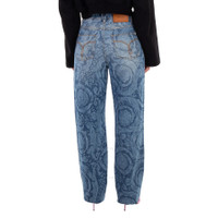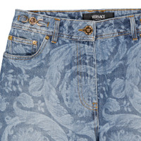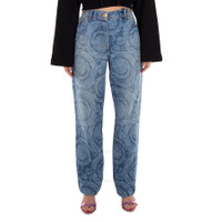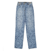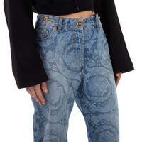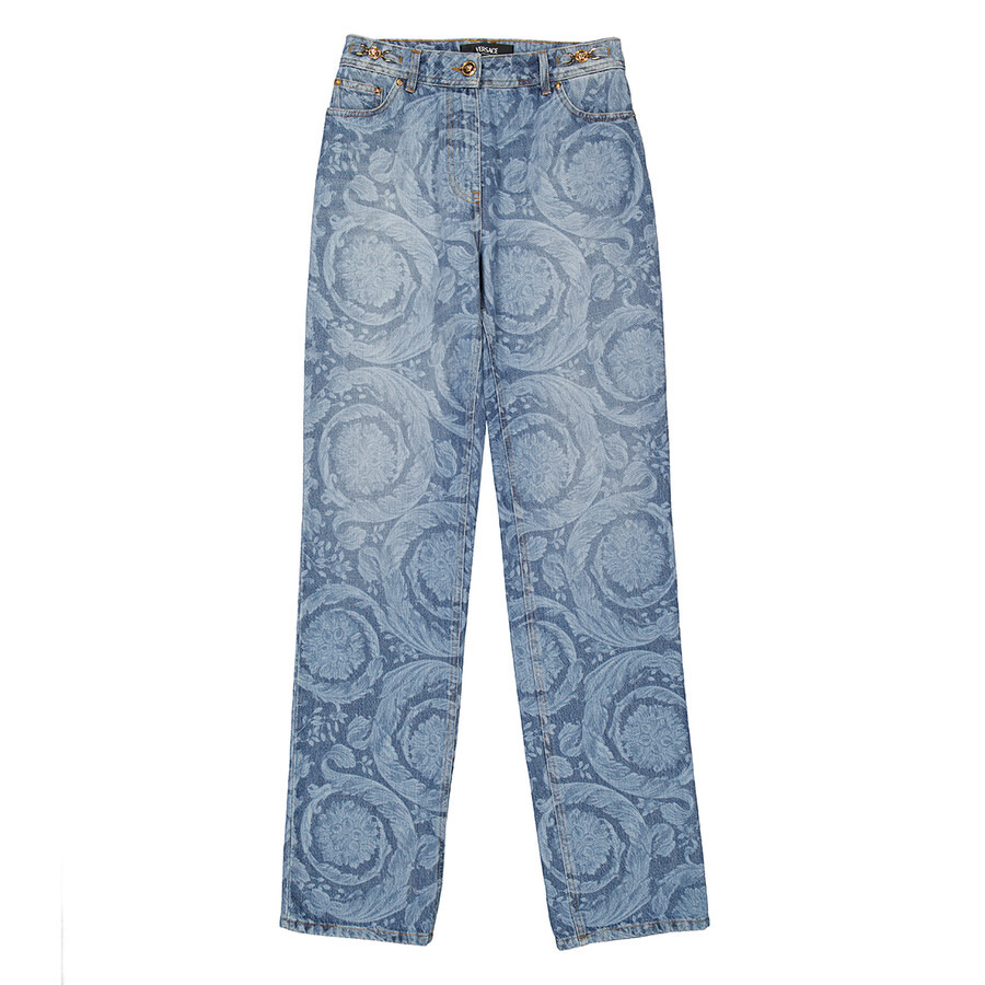 Versace Ladies Bottoms. Fashion category: Jeans & Denim. SKU: 1011519_1A10029-MEDIUM BLUE. Color: Blue. Versace Barocco Straight-Leg Denim Jeans. These mid-rise jeans are crafted from washed cotton denim and feature a signature Barocco print, a Medusa plaque detail, and a logo patch at the rear. Designed with belt loops, a concealed fly with button fastening, a straight-leg cut, and a classic five-pocket style. 100% Cotton. Made in Italy. GENERAL Brand Type: Designer Color: Blue INFORMATION Brand: Versace Gender: Womens Model: 1011519_1A10029-MEDIUM BLUE DETAILS Category: Bottoms Apparel Type: Jeans & Denim Material: Cotton ADDITIONAL INFO Jomashop Sku: -191A10029MEDIUMBLUE Department: Clothing