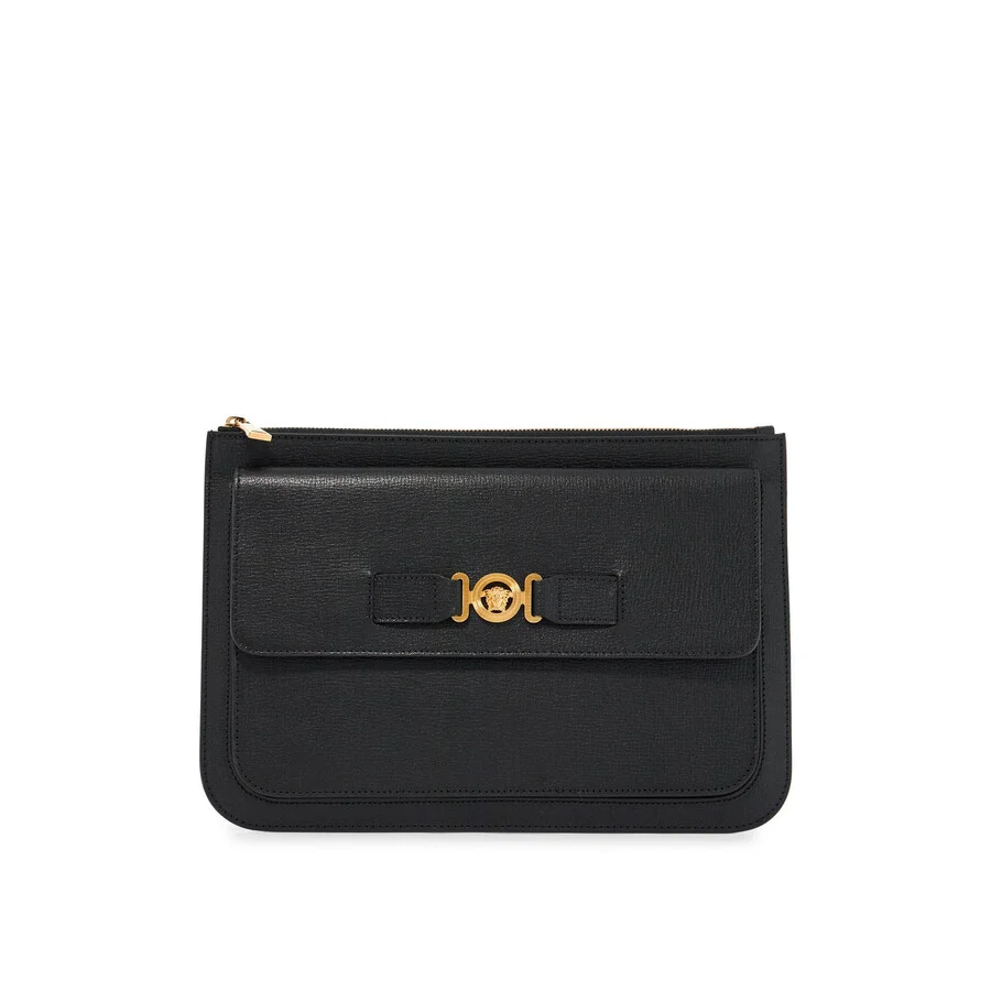 Versace Men's Clutch. SKU: 10158171A10544 1B00V. Color: Black Versace Gold. Versace Black Leather Large Medusa Biggie Clutch. 100% goat leather GENERAL Brand Type: Designer Color: Black Versace Gold INFORMATION Brand: Versace Gender: Mens Model: 10158171A10544 1B00V ADDITIONAL INFO UPC Code: 8053609384509 Jomashop Sku: Z-PE7HB Department: Bags Category: Clutches