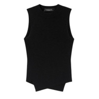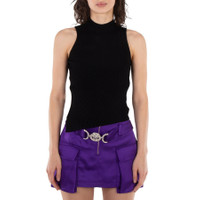 Versace Ladies Tops. Fashion category: Shirts & Blouses. SKU: 10098331A07082-1B000. Color: Black. Versace Black Ribbed Knit Sleeveless Top. This ribbed-knit sleeveless top features an asymmetric design and is accented with delicate Medusa stud at the back. 88% Viscose, 12% Polyester. Made in Italy. GENERAL Color: Black INFORMATION Brand: Versace Gender: Womens Model: 10098331A07082-1B000 DETAILS Category: Tops Apparel Type: Shirts & Blouses Material: Polyester, Viscose ADDITIONAL INFO Jomashop Sku: -10098331A070821B000 Department: Clothing