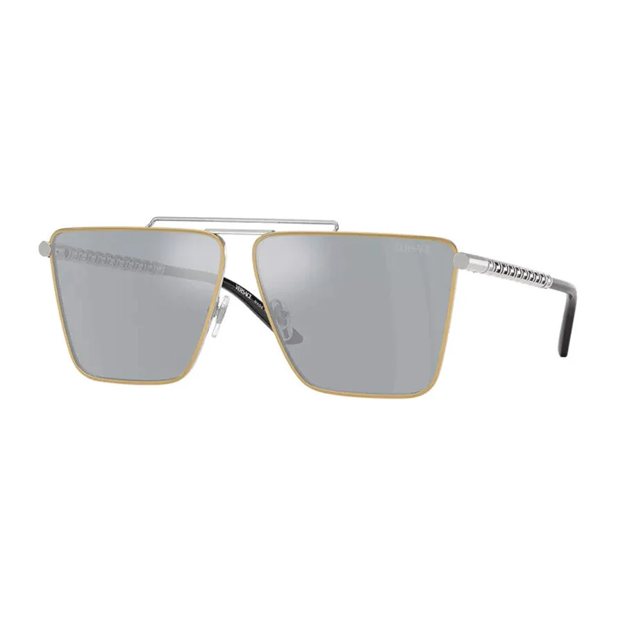 Versace Sunglasses. Series number: VE2266. Color code: 15141U. Shape: Navigator. Lens Width: 64 mm. Lens Bridge: 11 mm. Arm Length: 145 mm. 100% UV protection. Non-Polarized. Frame Material: Metal. Frame Color: Gold/Silver. Lenses Type: Blue/Silver Mirror. Rim Style: Full-Rim. UPC/EAN code: 8056262014158. Versace Blue/Silver Mirror Navigator Men's Sunglasses VE2266 15141U 64. Manufacturer's Packaging Included. Packaging Size And Color May Vary. DETAILS Lens Width (mm): 64 Arm Length (mm): 145 mm Lens Bridge (mm): 11 Series Number: VE2266 Frame Color: Gold/Silver Color Code: 15141U Lens Type: Mirrored Lens: Blue/Silver Mirror UV Protection: 100% UV Protection Rim Style: Full-Rim Frame Shape: Navigator Frame Material: Not Specified Prescription Available: No GENERAL Size: 64 mm Brand Type: Designer Collection Name: VE2266 INFORMATION Brand: Versace Gender: Mens Model: VE2266 15141U 64 ADDITIONAL INFO UPC Code: 8056262014158 Jomashop Sku: Z-E2AS9 Department: Sunglasses