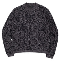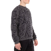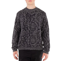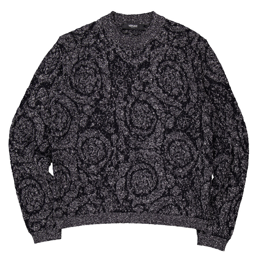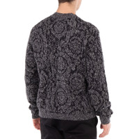 Versace Men's Tops. Fashion category: Cardigans & Sweaters. SKU: 1016053-1A11189-BLACK. Color: Black. Versace Cable-Knit Barocco Sweater. A chunky cable-knit sweater in a cotton blend, featuring a Barocco pattern, long sleeves, and ribbed crewneck, hem, and cuffs. 66% Cotton, 27% Nylon, 6% Polyester, 1% Other fibers. Made in Italy. GENERAL Brand Type: Designer Color: Black INFORMATION Brand: Versace Gender: Mens Model: 1016053-1A11189-BLACK DETAILS Category: Tops Apparel Type: Cardigans & Sweaters Material: Cotton, Nylon, Polyester ADDITIONAL INFO Jomashop Sku: -10160531A11189BLACK Department: Clothing
