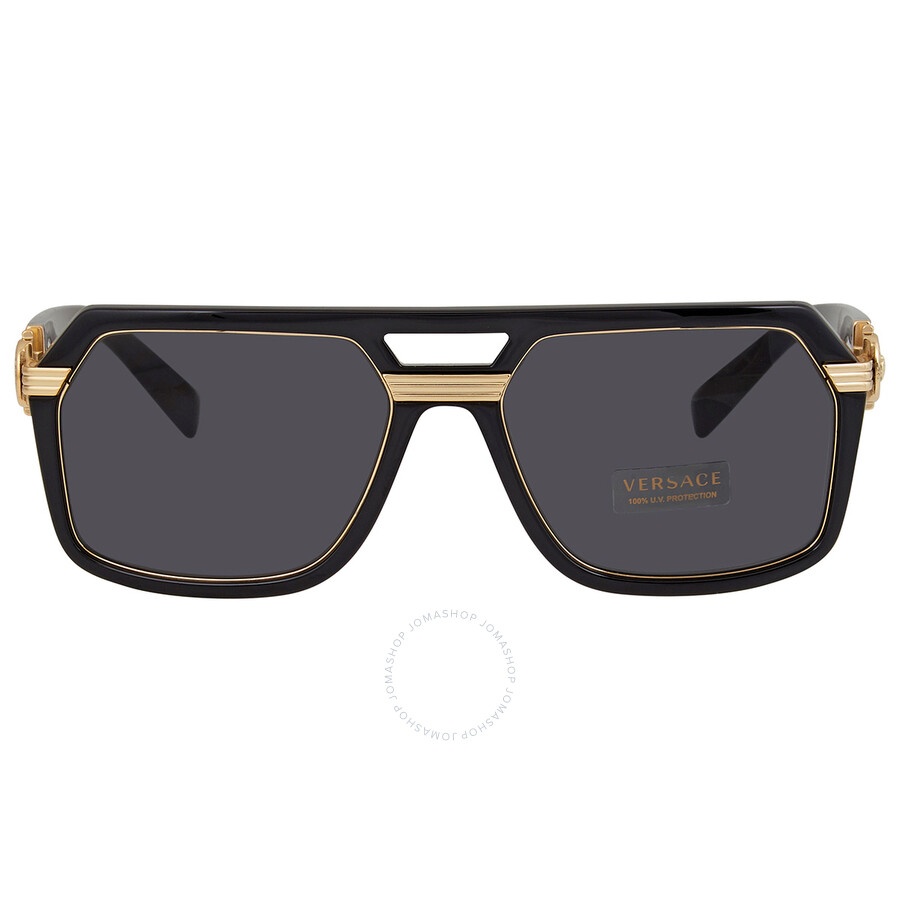 Versace Sunglasses. Series number: VE4399. Color code: GB1/87. Shape: Geometric. Lens Width: 58 mm. Lens Bridge: 18 mm. Arm Length: 145 mm. 100% UV protection. Non-Polarized. Frame Material: Plastic. Frame Color: Black. Lenses Type: Dark Grey. Rim Style: Full-Rim. UPC/EAN code: 8056597342520. Versace Dark Grey Geometric Men's Sunglasses VE4399 GB1/87 58. Manufacturer's Packaging Included. Packaging Size And Color May Vary. DETAILS Lens Width (mm): 58 Arm Length (mm): 145 mm Lens Bridge (mm): 18 Series Number: VE4399 Frame Color: Black Color Code: GB1/87 Lens: Dark Grey UV Protection: 100% UV Protection Rim Style: Full-Rim Frame Shape: Geometric Frame Material: Plastic GENERAL Size: 58 mm INFORMATION Brand: Versace Gender: Mens Model: VE4399 GB1/87 58 ADDITIONAL INFO UPC Code: 8056597342520 Jomashop Sku: Z-44MCJ Department: Sunglasses Category: Sunglasses