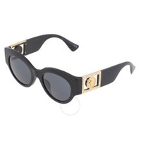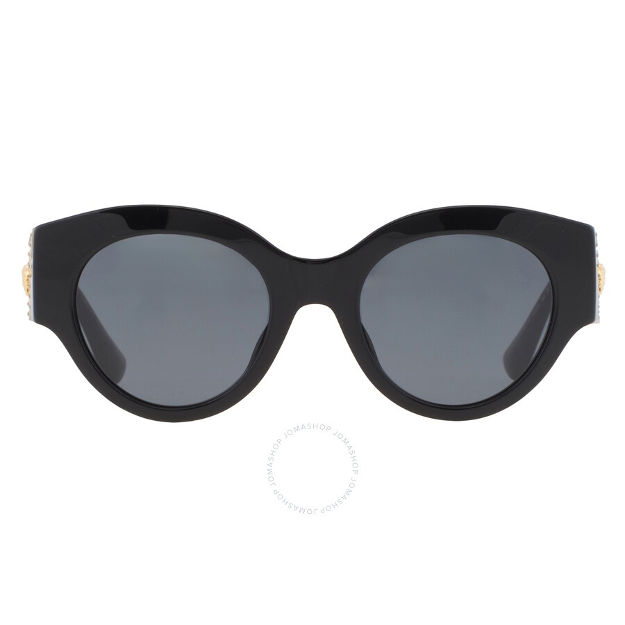 Versace Sunglasses. Series number: VE4438BF. Color code: GB1/87. Shape: Round. Lens Width: 52 mm. Lens Bridge: 22 mm. Arm Length: 145 mm. 100% UV protection. Frame Material: Plastic;Metal. Frame Color: Black;Gold. Lenses Type: Dark Grey. Rim Style: Full-Rim. UPC/EAN code: 8056597734554. Versace Dark Grey Round Ladies Sunglasses VE4438BF GB1/87 52. Manufacturer's Packaging Included. Packaging Size And Color May Vary. DETAILS Lens Width (mm): 52 Arm Length (mm): 145 mm Lens Bridge (mm): 22 Series Number: VE4438BF Frame Color: Black;Gold Color Code: GB1/87 Lens: Dark Grey UV Protection: 100% UV Protection Rim Style: Full-Rim Frame Shape: Round Frame Material: Not Specified INFORMATION Brand: Versace Gender: Womens Model: VE4438BF GB1/87 52 ADDITIONAL INFO UPC Code: 8056597734554 Jomashop Sku: Z-Q8N77 Department: Sunglasses Category: Sunglasses