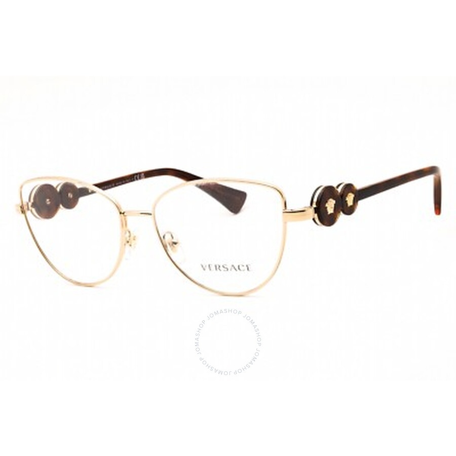 Versace Eyeglasses. Series number: VE1284. Color code: 1489. Shape: Cat Eye. Lens Width: 55 mm. Lens Bridge: 16 mm. Arm Length: 145 mm. Frame Material: Metal. Frame Color: Light Gold. Lenses Type: Demo. Rim Style: Full-Rim. UPC/EAN code: 8056597727846. Versace Demo Cat Eye Ladies Eyeglasses VE1284 1489 55. Manufacturer's Packaging Included. Packaging Size And Color May Vary. GENERAL Brand Type: Designer Frame Color: Light Gold INFORMATION Brand: Versace Gender: Womens Model: VE1284 1489 55 DETAILS Series Number: VE1284 Color Code: 1489 Lens: Demo Size: 55 mm Lens Width (mm): 55 Lens Bridge (mm): 16 Arm Length (mm): 145 mm Rim Style: Full-Rim Frame Shape: Cat Eye Frame Material: Not Specified ADDITIONAL INFO UPC Code: 8056597727846 Jomashop Sku: Z-7G8AL Department: Eyeglasses Category: Eyeglass Frames