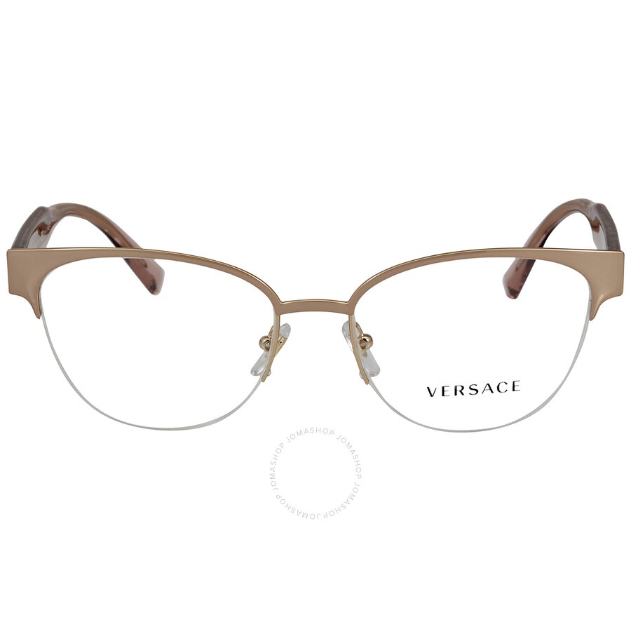 Versace Eyeglasses. Series number: VE1265. Color code: 1463. Color: Demo Lens. Shape: Oval. Lens Width: 53 mm. Lens Bridge: 17 mm. Arm Length: 140 mm. Frame Material: Metal. Frame Color: Gold Tone. Lenses Type: Demo. Rim Style: Semi-Rimless. UPC/EAN code: 8056597117654. Versace Demo Oval Ladies Eyeglasses VE1265 1463 53. Manufacturer's Packaging Included. Packaging Size And Color May Vary. GENERAL Brand Type: Designer Frame Color: Gold Tone Color: Demo Lens INFORMATION Brand: Versace Gender: Womens Model: VE1265 1463 53 DETAILS Series Number: VE1265 Color Code: 1463 Lens: Demo Size: 53 mm Lens Width (mm): 53 Lens Bridge (mm): 17 Arm Length (mm): 140 mm Rim Style: Semi-Rimless Frame Shape: Oval Frame Material: Not Specified ADDITIONAL INFO UPC Code: 8056597117654 Jomashop Sku: Y-166659 Department: Eyeglasses Category: Eyeglass Frames