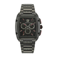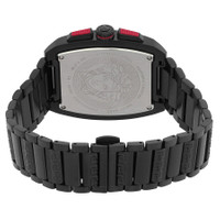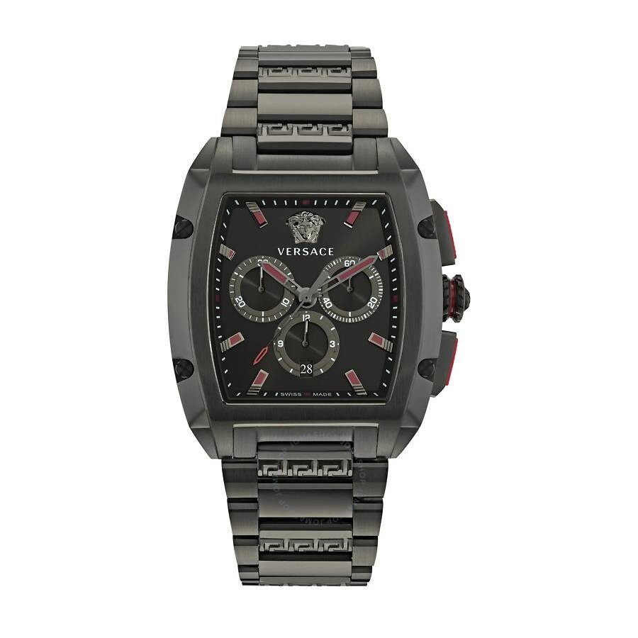 Black IP stainless steel case and bracelet. Fixed black IP stainless steel bezel. Black dial with black hands and index hour markers. Minute markers around the outer rim. Dial Type: Analog. Luminescent hands and markers. Date display at the 6 o'clock position. Chronograph - three sub-dials displaying: 60 second, 30 minute and 12 hour. Quartz movement. Scratch resistant sapphire crystal. Pull / push crown. Solid case back. Unique case shape, case size: 42 x 49.5 mm. Deployment with push button release clasp. Water resistant at 50 meters / 165 feet. Functions: chronograph, date, hour, minute, second. Dominus Series. Sport watch style. Watch label: Swiss Made. Versace Dominus Chronograph Quartz Black Dial Men's Watch VE6H00623. CASE Case Size: 42 Case Material: Stainless Steel Case Shape: Unique Case Back: Solid BAND Band Material: Stainless Steel Band Type: Bracelet Band Color: Black IP Clasp: Deployment with Push Button Release DIAL Dial Color: Black Type: Analog Crystal: Scratch Resistant Sapphire Hands: Black Dial Markers: Index Second Markers: Minute Markers around the outer rim Sub Dials: Three - 60 Second, 30 Minute and 12 Hour Luminiscence: Hands and Markers Bezel: Fixed Bezel Color: Black IP Bezel Material: Stainless Steel Crown: Pull / Push INFORMATION Brand: Versace Series: Dominus Collection Name: Dominus Gender: Mens Model: VE6H00623 Watch Label: Swiss Made Movement: Quartz FEATURES Water Resistance: 50 meters / 165 feet Calendar: Date display at the 6 o'clock position Functions: Chronograph, Date, Hour, Minute, Second Watch Features: Chronograph, Stainless Steel, Analog ADDITIONAL INFO Watch Style: Sport Warranty: 2 Year Jomashop Warranty UPC Code: 7630615126944 Jomashop Sku: Z-PQLGH Department: Watches