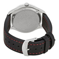 Stainless steel case with a black leather strap. Fixed black stainless steel bezel with a black top ring showing 24 hour (GMT) markings. Silver dial with luminous silver-tone hands and index hour markers. The Medusa Head logo appears at the 12 o'clock position position. Minute markers around the outer rim. Dial Type: Analog. Luminescent hands and markers. Date display at the 3 o'clock position. Quartz movement. Scratch resistant sapphire crystal. Solid case back. Case size: 42 mm. Case thickness: 10.5 mm. Round case shape. Band width: 20 mm. Water resistant at 50 meters / 165 feet. Functions: GMT, second time zone, hour, minute, second, date. Dress watch style. Watch label: Swiss Made. Versace Hellenyium GMT Silver Dial Men's Watch V11070017. CASE Case Size: 42 Case Thickness: 10.5 mm Case Material: Stainless Steel Case Shape: Round Case Back: Solid BAND Band Material: Leather Band Type: Strap Band Color: Black Band Width: 20 mm Clasp: Buckle DIAL Dial Color: Silver Type: Analog Crystal: Scratch Resistant Sapphire Hands: Luminous Silver-tone Dial Markers: Index Second Markers: Medusa Head logo at 12 o'clock position. . Minute Markers around the outer rim Luminiscence: Hands and Markers Bezel: Fixed Bezel Color: Black Bezel Material: Stainless Steel with a Black Top Ring showing 24 Hour (GMT) Markings INFORMATION Brand: Versace Series: Hellenyium Collection Name: Hellenyium Gender: Mens Model: V11070017 Watch Label: Swiss Made Movement: Quartz FEATURES Water Resistance: 50 meters / 165 feet Calendar: Date display at the 3 o'clock position Functions: GMT, Second Time Zone, Hour, Minute, Second, Date Watch Features: Time Zone, Stainless Steel, Leather, GMT, Analog ADDITIONAL INFO Watch Style: Dress Warranty: 2 Year Jomashop Warranty UPC Code: 7630030522826 Jomashop Sku: VER-V11070017 Department: Watches Category: Watches