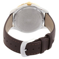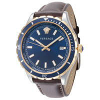Silver-tone stainless steel case with a brown leather strap. Uni-directional rotating blue stainless steel bezel. Blue dial with gold-tone hands and index hour markers. Minute markers around the outer rim. Dial Type: Analog. Luminescent hands and markers. Date display at the 3 o'clock position. Quartz movement. Scratch resistant sapphire crystal. Pull / push crown. Solid case back. Round case shape, case size: 42 mm. Band width: 20 mm. Buckle clasp. Water resistant at 50 meters / 165 feet. Functions: date, hour, minute, second. Hellenyium Series. Casual watch style. Watch label: Swiss Made. Versace Hellenyium Quartz Blue Dial Men's Watch VE3A00420. CASE Case Size: 42 Case Material: Stainless Steel Case Shape: Round Case Back: Solid BAND Band Material: Leather Band Type: Strap Band Color: Brown Band Width: 20 mm Clasp: Buckle DIAL Dial Color: Blue Type: Analog Crystal: Scratch Resistant Sapphire Hands: Gold-tone Dial Markers: Index Second Markers: Minute Markers around the outer rim Luminiscence: Hands and Markers Bezel: Uni-directional Rotating Bezel Color: Blue Bezel Material: Stainless Steel Crown: Pull / Push INFORMATION Brand: Versace Series: Hellenyium Collection Name: Hellenyium Gender: Mens Model: VE3A00420 Watch Label: Swiss Made Movement: Quartz FEATURES Water Resistance: 50 meters / 165 feet Calendar: Date display at the 3 o'clock position Functions: Date, Hour, Minute, Second Watch Features: Stainless Steel, Leather, Gold, Analog ADDITIONAL INFO Watch Style: Casual Warranty: 2 Year Jomashop Warranty UPC Code: 7630030577253 Jomashop Sku: VRS-VE3A00420 Department: Watches