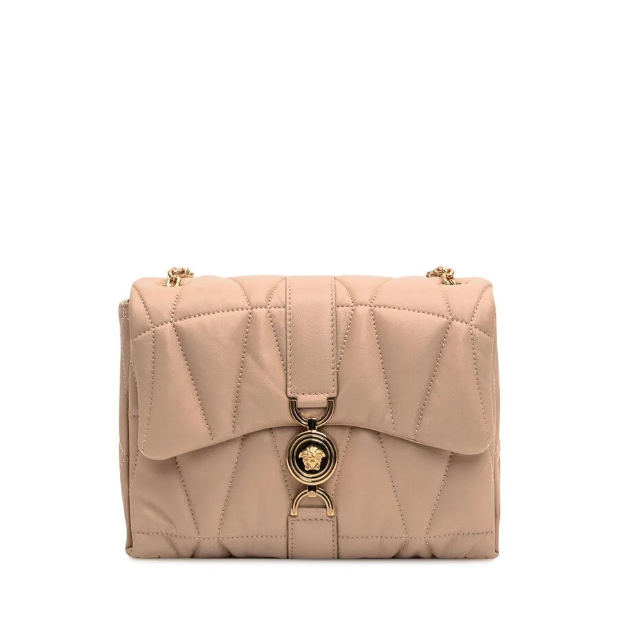 Pink Bag In Lamb Leather. Medusa Head Motif. Hinged Top With Magnetic Closure. Chain Shoulder Strap. Internal Compartment Divided. Composition: Outside:, 100% Leather Lining:, 100% Leathercomposition: 100% Cotton;, 100% Lamb Skin GENERAL Brand Type: Designer Color: Nude INFORMATION Brand: Versace Gender: Womens Model: 10159641A12973 1KK4V ADDITIONAL INFO Jomashop Sku: Z-PFBFE Department: Bags Category: Shoulder Bag