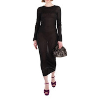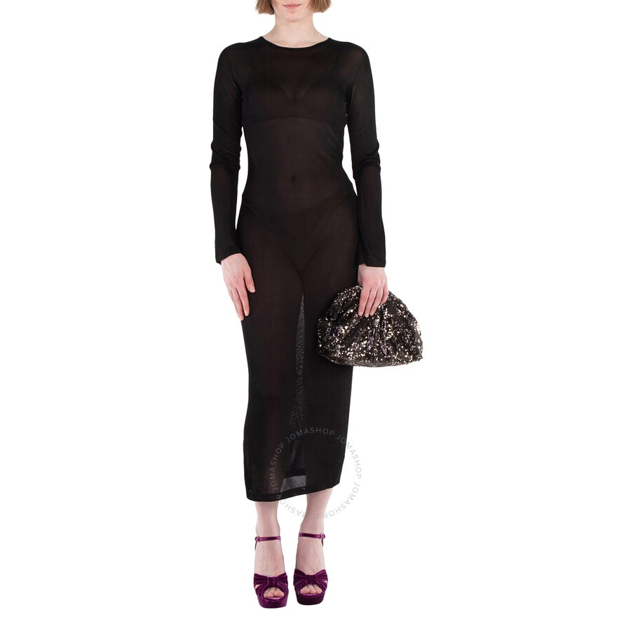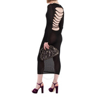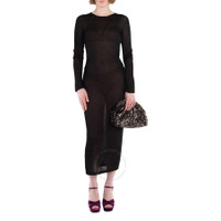 Versace Ladies Dresses. Fashion category: Cocktail & Party Dresses. SKU: 10098261A07009-1B000. Color: Black. Versace Knit Slashed Back Transparent Midi Dress. This chic Versace dress features a burnished finish with slashes at the back and an unfinished crew neckline, all crafted from soft black viscose for a sophisticated look. Made in Italy. GENERAL Brand Type: Designer Color: Black INFORMATION Brand: Versace Gender: Womens Model: 10098261A07009-1B000 DETAILS Category: Dresses Apparel Type: Cocktail & Party Dresses Material: Viscose ADDITIONAL INFO Jomashop Sku: -10098261A070091B000 Department: Clothing