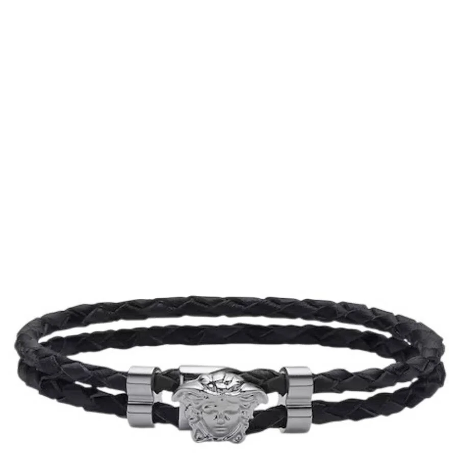 Versace Men's Bracelets. SKU: DG05579-DMTN-BLACK ULTRA BLACK RUTH. Color: Black Ultra Black Ruth. Versace Double Braided Leather Bracelet. This braided bracelet is crafted with a double-layered leather strap, intricately woven for a bold, textured look. It is finished with the brand’s iconic Medusa charm, adding a signature touch of luxury. Length: 7.9" / 20 cm. 100% Leather, Hardware: 100% Metal. Made in Italy. GENERAL Brand Type: Designer Color: Black Ultra Black Ruth INFORMATION Brand: Versace Gender: Mens Model: DG05579-DMTN-BLACK ULTRA BLACK RUTH DETAILS Size Info: One Size Bracelet Style : Wrap Around Ring Style: Fashion Material : Base Metal ADDITIONAL INFO UPC Code: 8052471763962 Jomashop Sku: Z-DDX79 Department: Jewelry Category: Bracelets